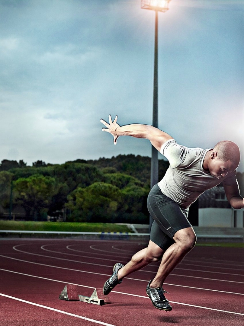 Shooting photo pour représenter la discipline du 100m en athlétisme sur la région marseillaise.