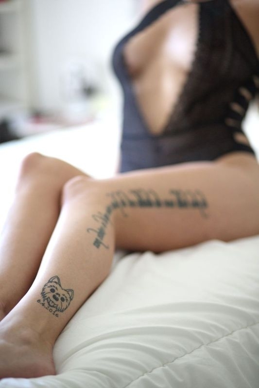 Je suis tatouée au niveau du pectoral gauche, sur le poignet, avant-bras gauche, le long de la jambe gauche ainsi qu'à la cheville gauche.