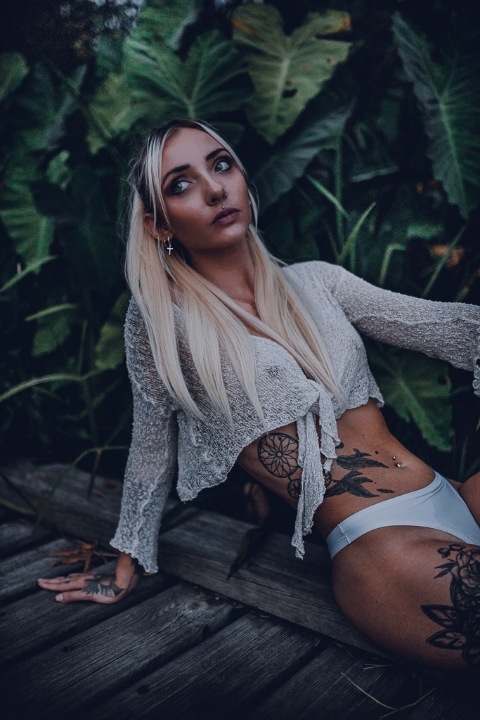 Piercing au nez et au dessus de la lèvre et au nombril . Tatouer tout le bras droit bras gauche juste l’avant bras , cuisse droite et le ventre .