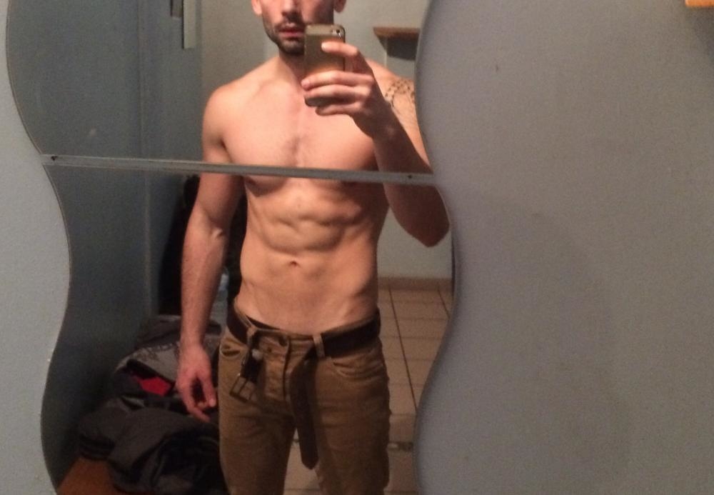 Tatouage épaule droite et bas du pectoral droit, physique musclé.