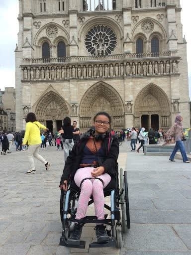 Je suis en fauteuil roulant.