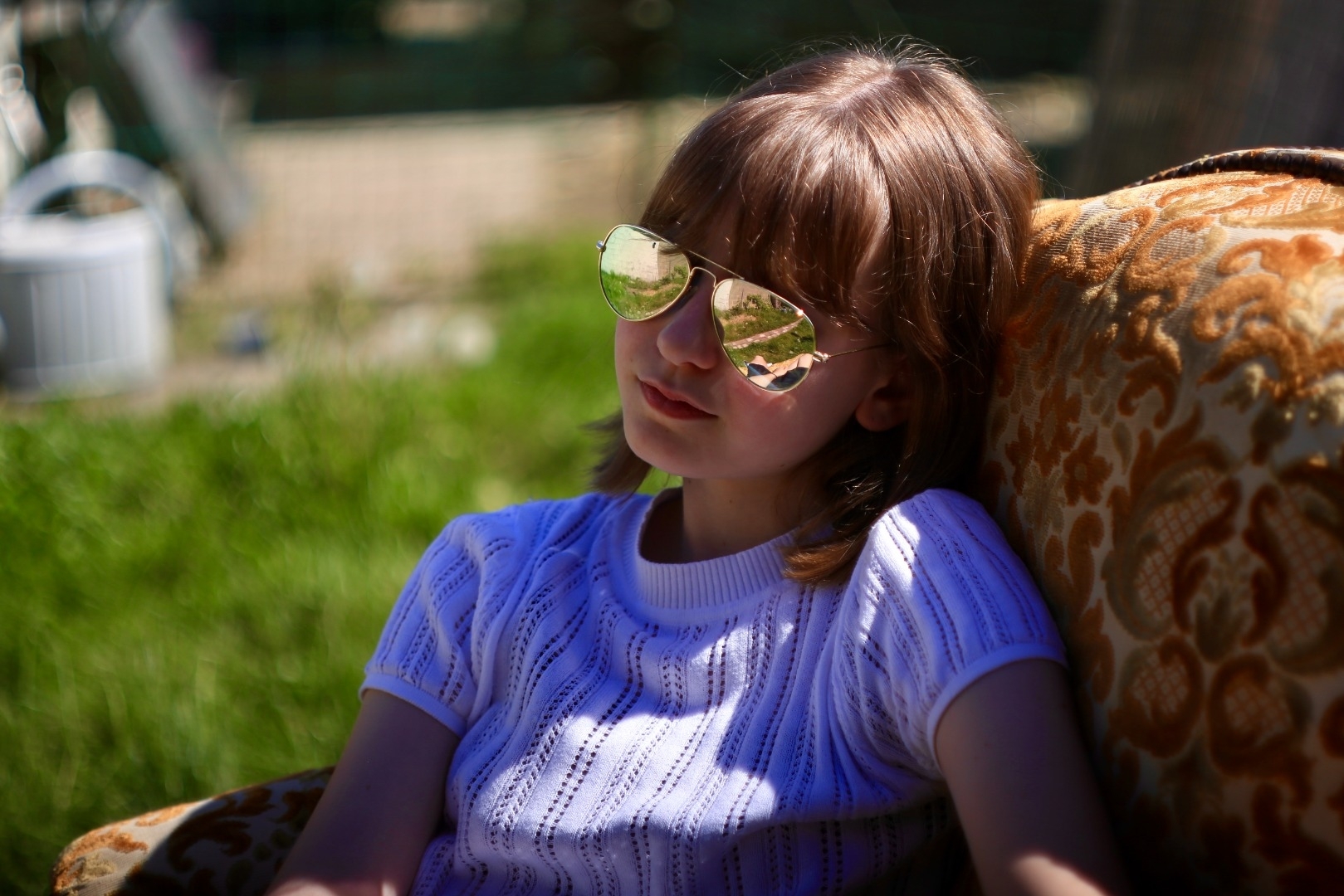 Je porte des lunettes mais je peux voir sans, j'ai les oreilles percées.