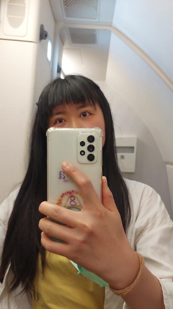 Cheveux longs, lisses et noirs, prenant des reflets orange-bruns sous la lumière du soleil. Cheveux naturels, non permanents ni teintés. Yeux bruns sous la lumière du soleil. Teint asiatique standard, peau en bon état, sans tatouages.