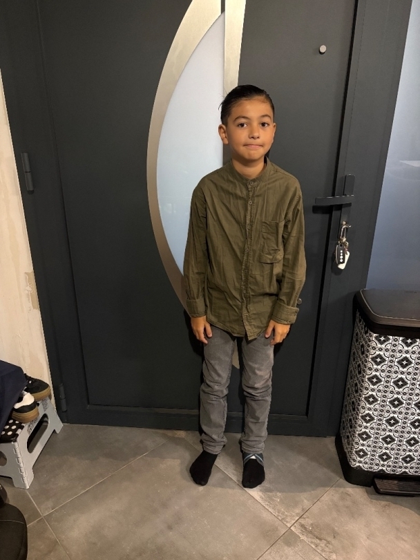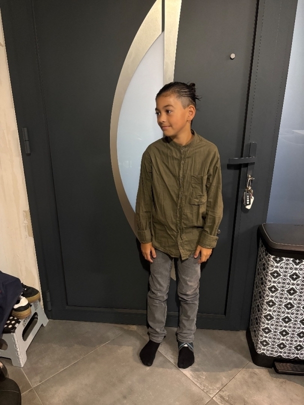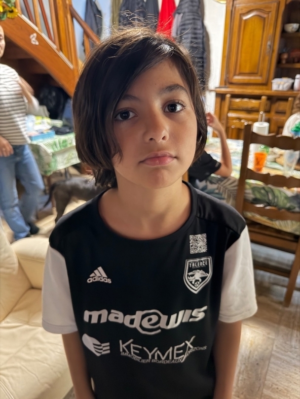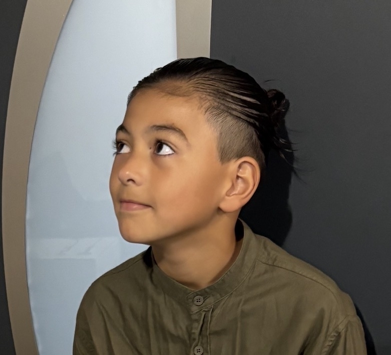 Petit garçon plein de vie grand mince mate cheveux long