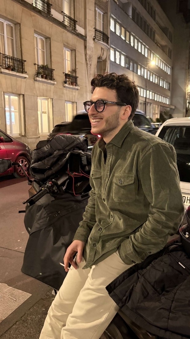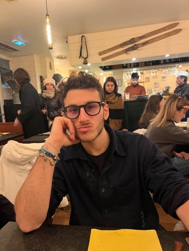 Blanc de peau, cheveux bruns bouclés, lunettes, silhouette sportive, musclé. juif/arabe, fumeur, beaucoup de répartie, à l'aise en société, jamais tourné en face d'une caméra. Permiere à tout