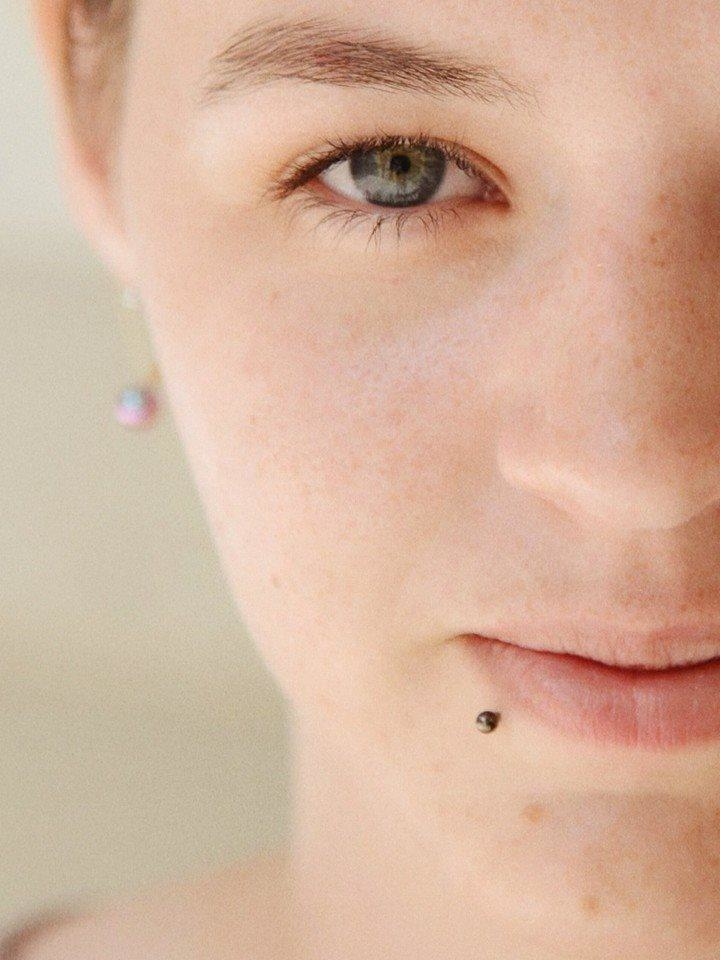 Piercing au labret (lèvre), peu de trace lorsqu'il est retiré.
