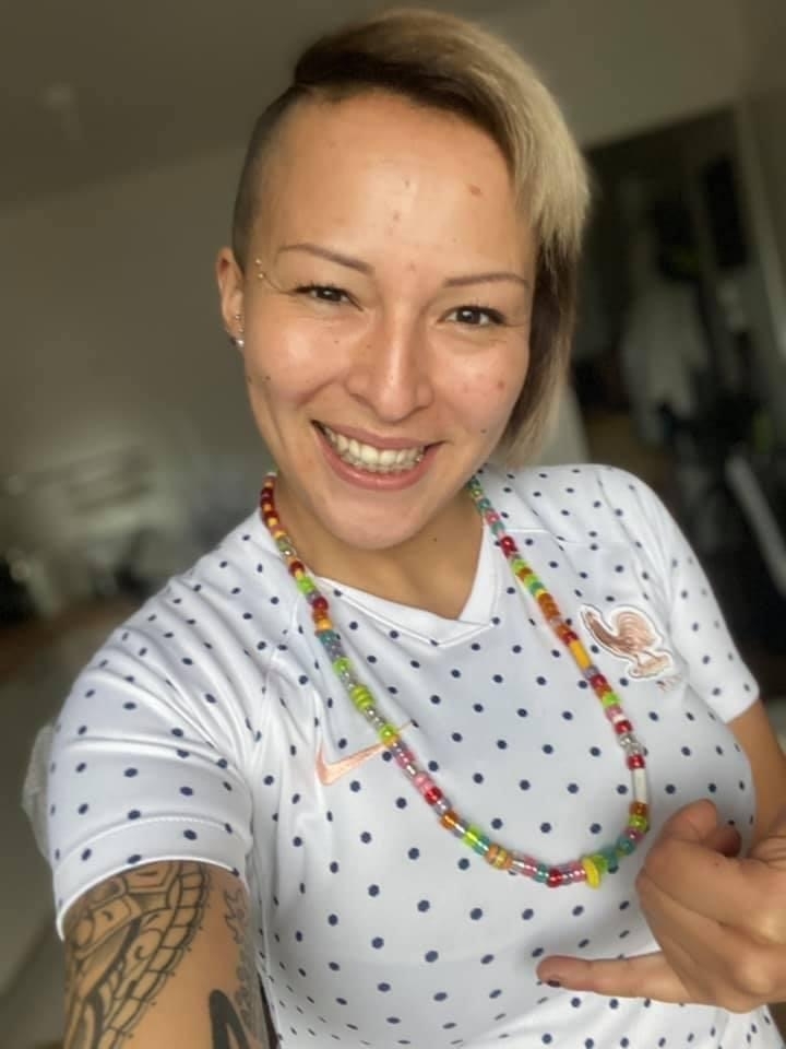 Tatouage et moitié de la tête rasée