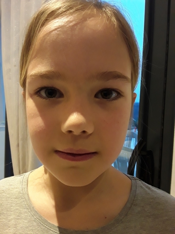 Chloé a un petit angiome rouge au coin de l'œil droit.