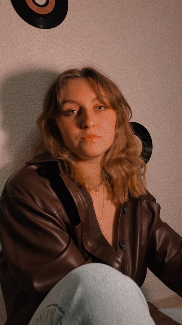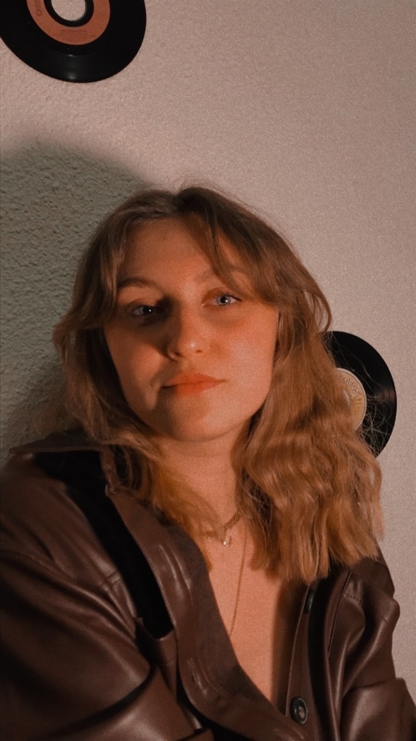 Emilie a de longs cheveux fins, mince, de grandes jambes, des yeux bleus.