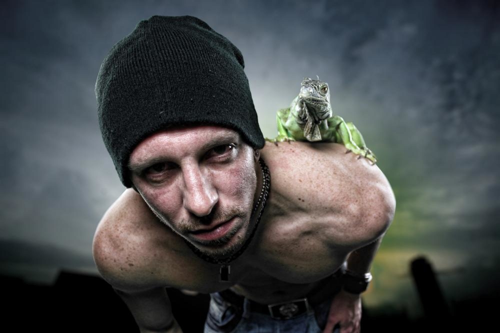 Taches de rousseur, tatouage sur la hanche gauche, piercing.