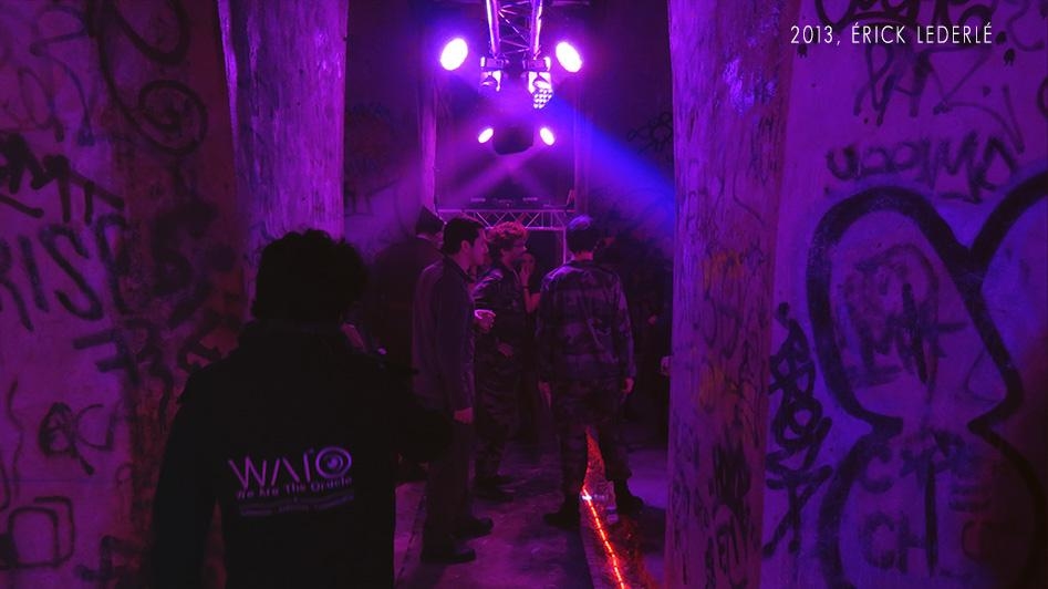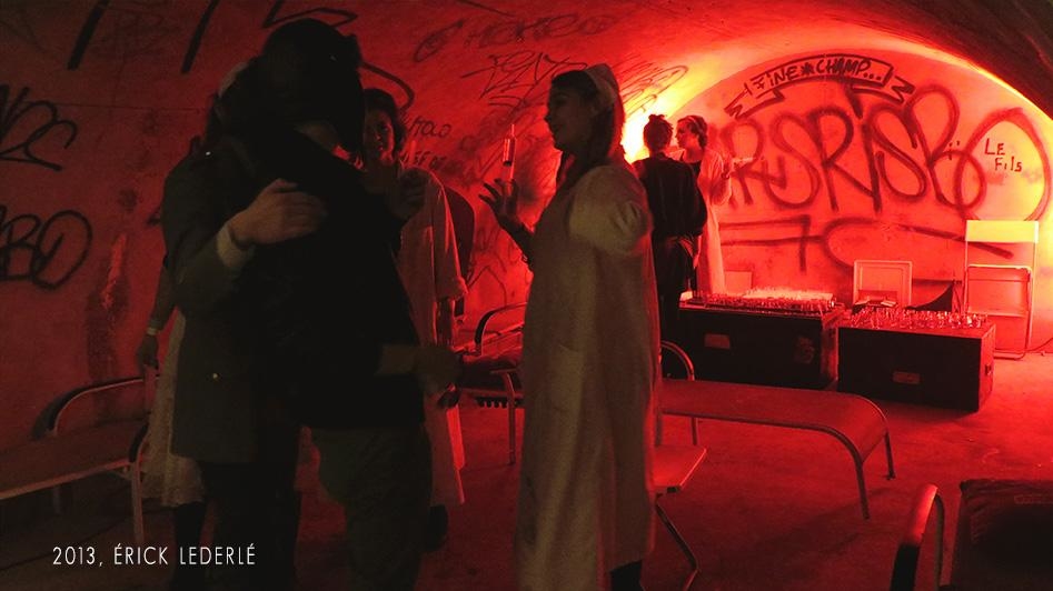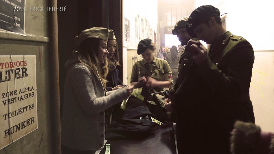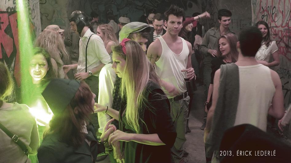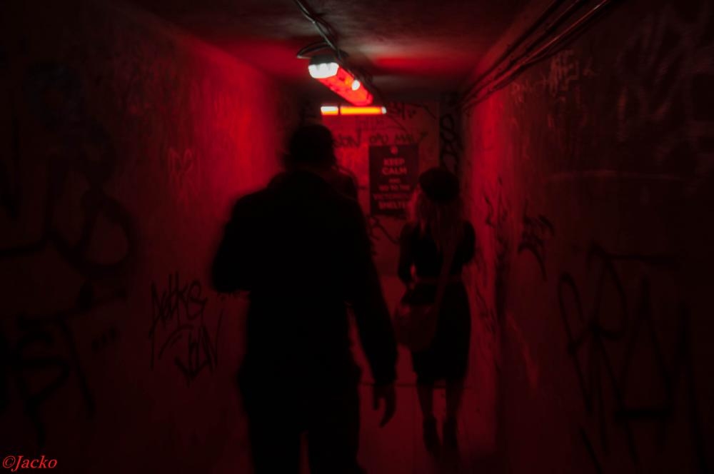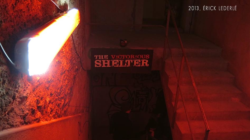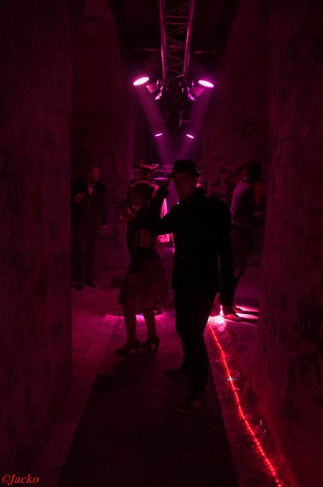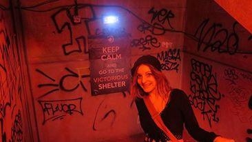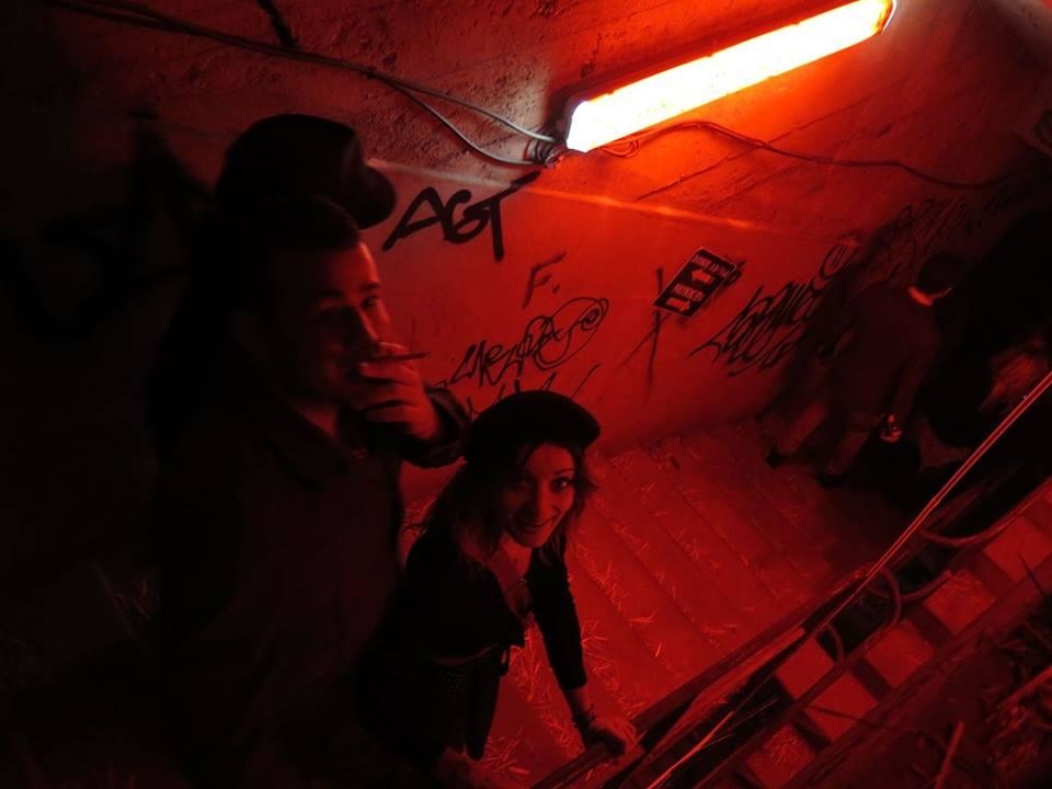 Nous pouvons entendre "Dépêchez-vous, plus vite !" accompagné d'une sirene alertant des obus et des balles, alors que nous commençons à descendre les escaliers. Une soirée pleine de surprises dans un lieu exceptionnel, constitué : de béton, de graffs et d'une odeur de poudre à canon à faire froid dans le dos !