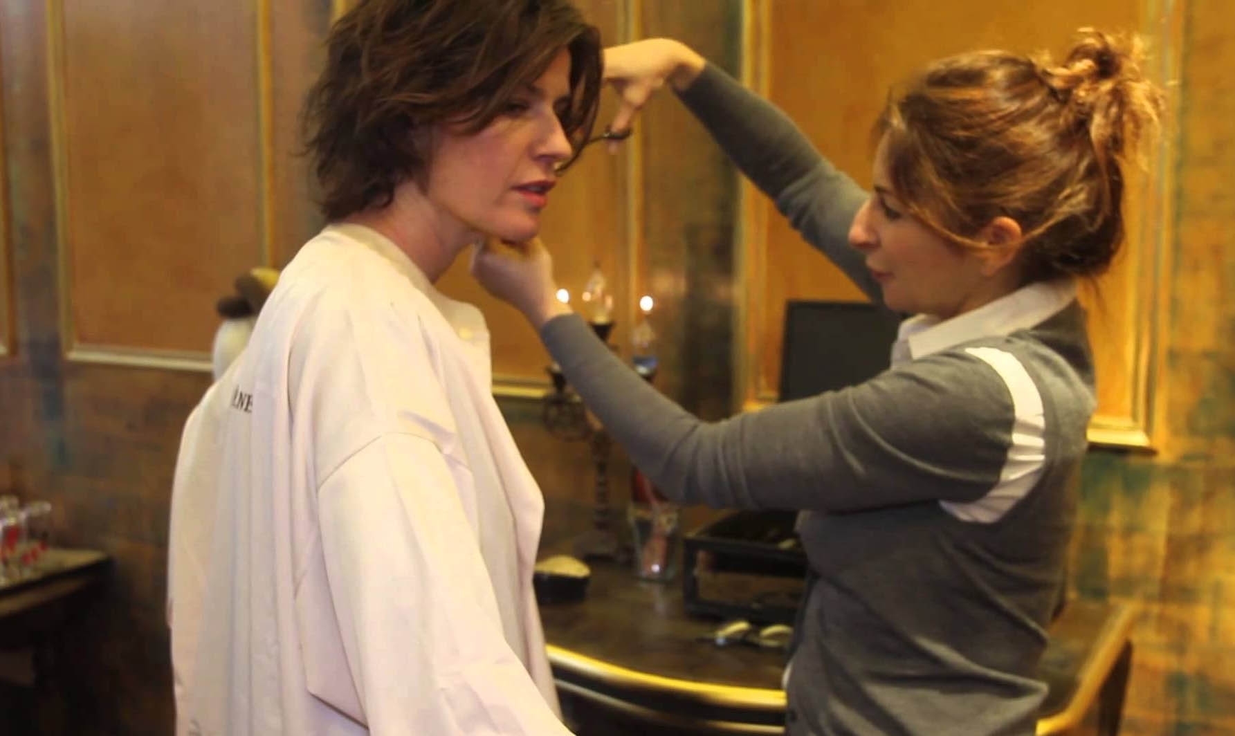 "Aujourd'hui c'est au tour d'Irène Jacob de se faire couper les cheveux" nous a tout de suite dit Sarah. La première chose