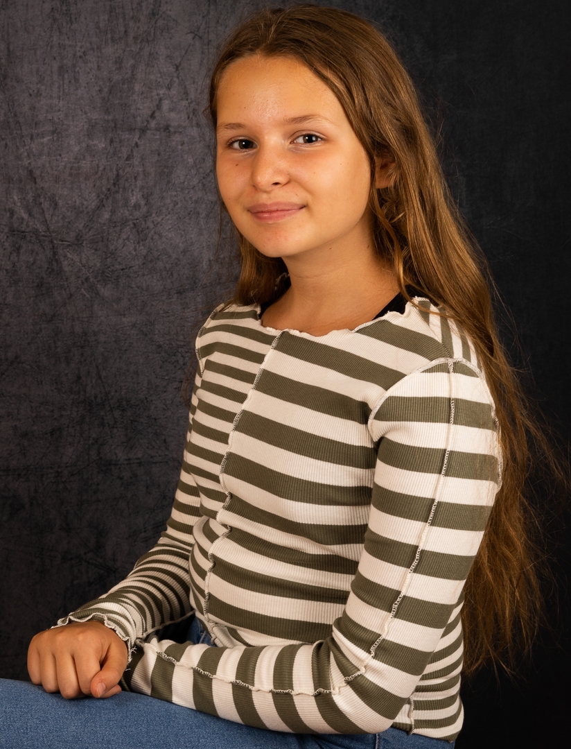 Jeune fille pétillante de 11 ans, j'ai très envie de jouer dans un film. J'ai fais une comédie musicale en amateur. Je pratique la danse classique depuis l'âge e 4 ans, j'ai fait du piano et de la guitare. Bref, je suis une artiste en devenir !