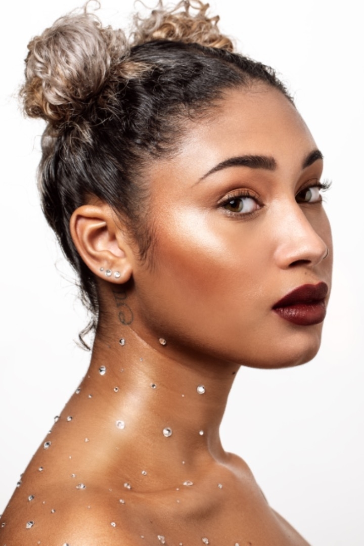 métisse, piercing aux oreilles, aux 2 narines, tatouages