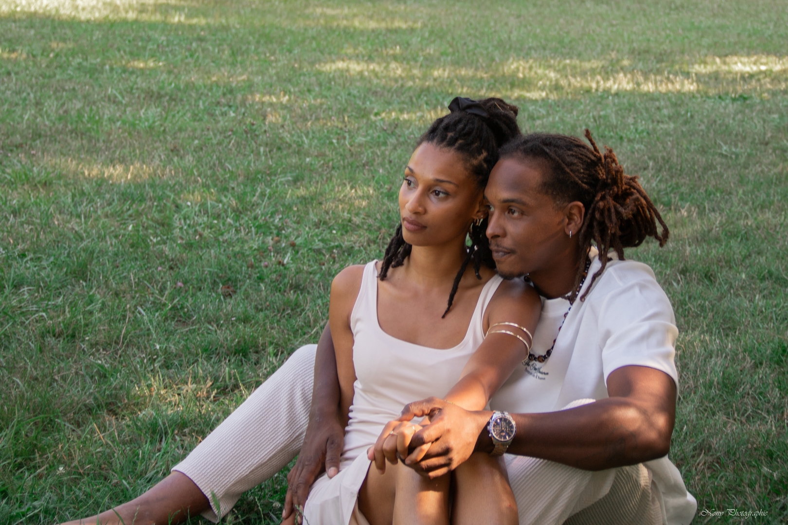 Shooting en extérieur, travail sur poses naturelles et expression en couple