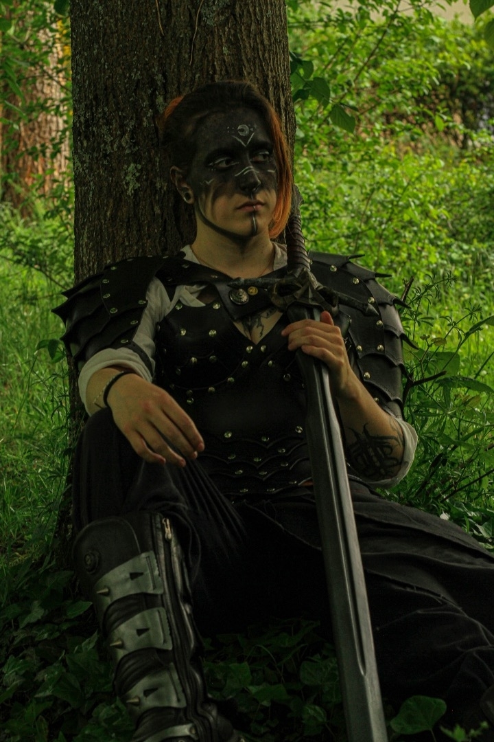 Piercing au nez et à la lèvre, 2 écarteurs aux oreilles et 1 piercing à l'oreille.