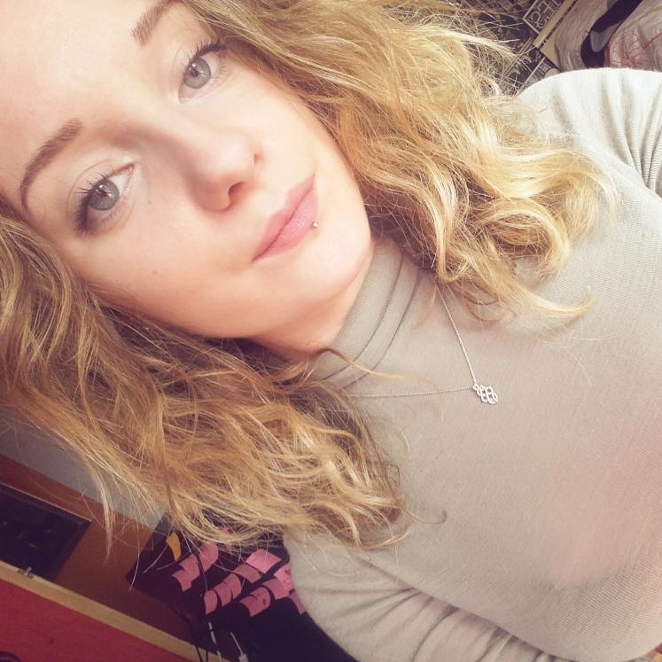 Piercing au labret centré.