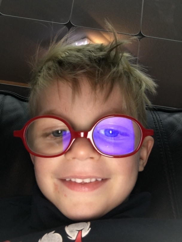 Yeux bleus avec lunettes,voix cassée naturelle
