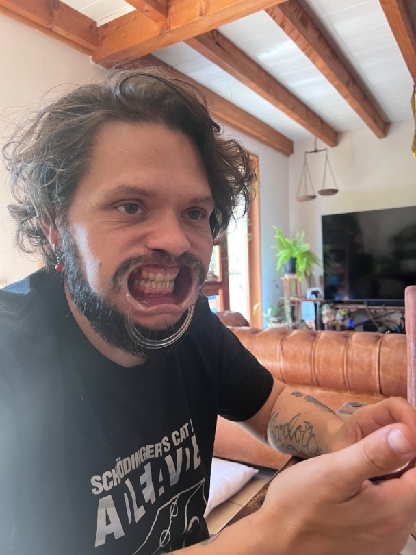 – Oreille droite percée (anneaux + boucle pendante possible selon bijoux portés)