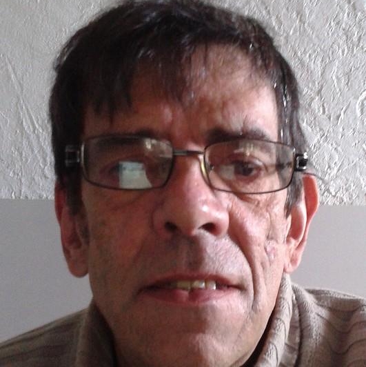 porte des lunettes , strabisme divergent (leger), tatouage sur les doigts main droite et sur les bras (tatouage de taulard)