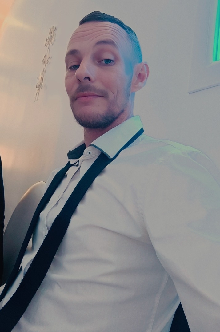 Beau regard, yeux bleus. Rides d'expressions, écorché vif. Silhouette Athlétique