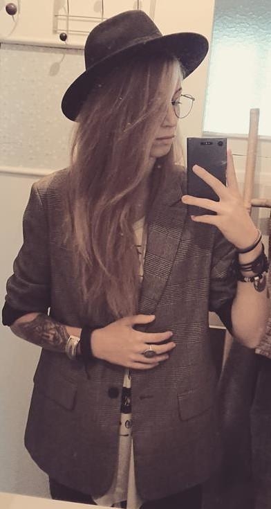 Tatouages au deux avant bras (Serpent enroulant une rose noir au clair de lune, ainsi qu'un loup, tous deux dans un style graphique, et pointillisme) et en haut du dos ( petit cerveau entouré d'atomes)