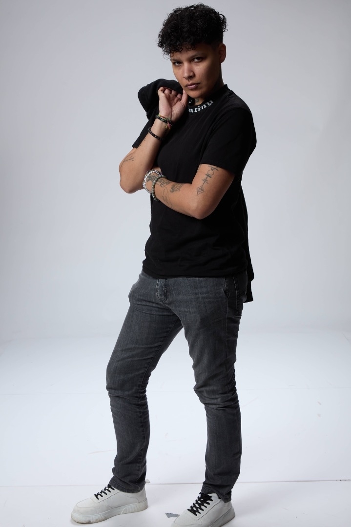 Je suis très solaire, souriante, j’ai une énergie débordante, je sais m’adapter à toutes situations avec calme. Piercing au nez, tatouage sur le corps. Boucle d’oreille, oreille droite.